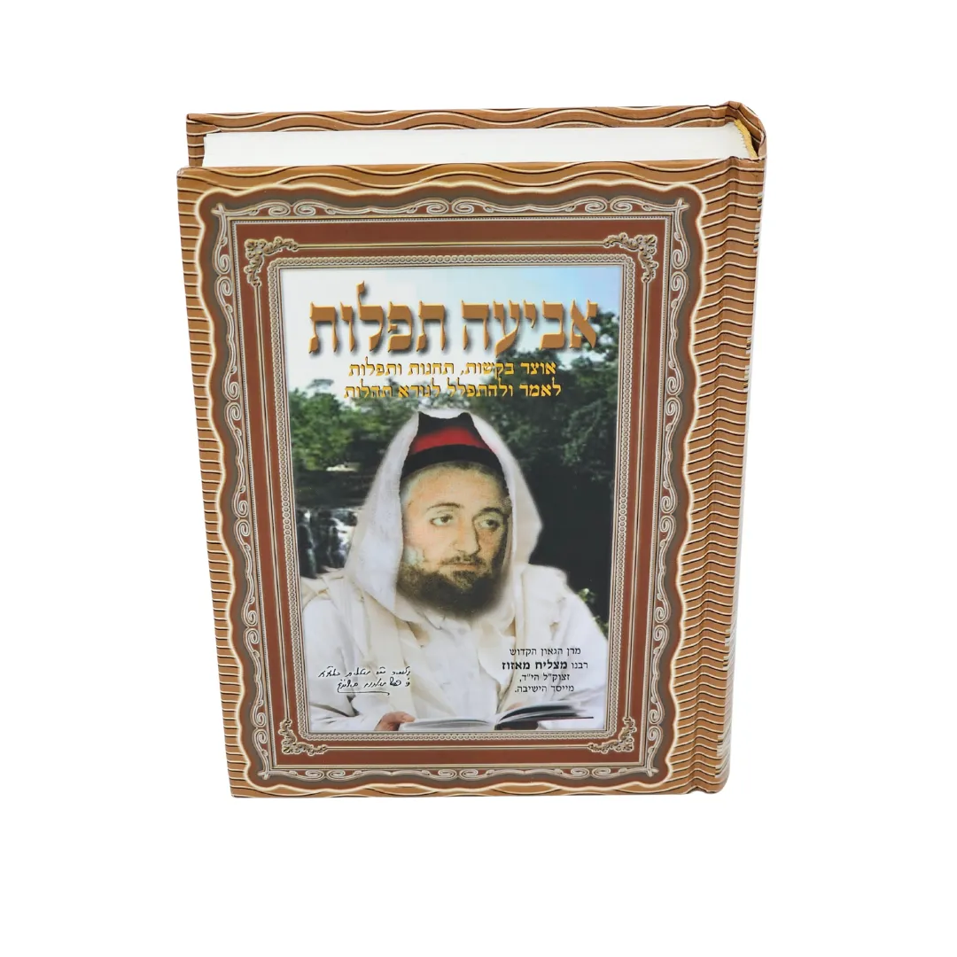 ספר אביעה תפלות-אוצר בקשות תחנות ותפלות לאמר ולהתפלל לנורא תהלות-מרן הגאון הקדוש רבנו מצליח מאזוז זצוקל היד מייסד הישיבה.